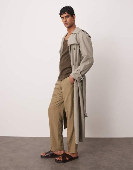 Mango - Broek van linnenmix met dunne krijtstreep in bruin