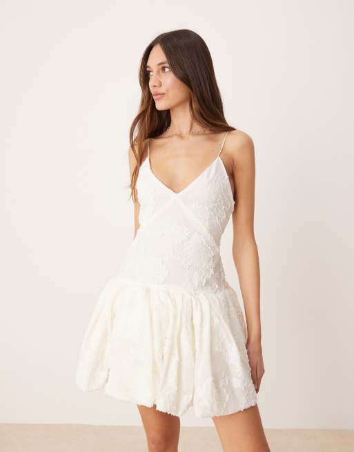 Mango - Capsule - Geborduurde mini jurk met pofzoom in wit