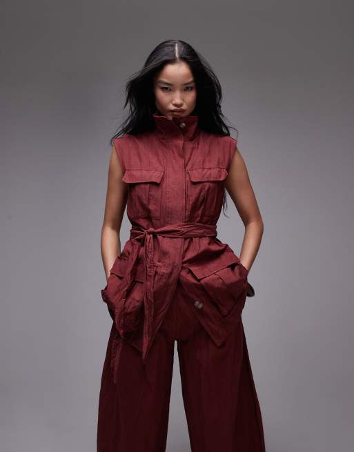 Mango - Capsule - Mouwloos overhemd met geplette textuur en lange pasvorm in donkerrood