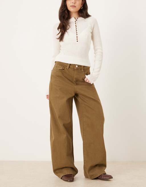 Mango - Clemence - Baggy jeans van 100% katoen in kaki