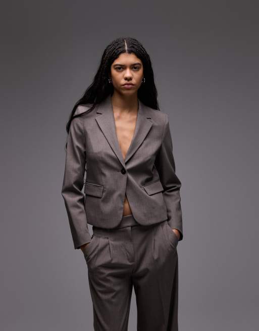 Mango - Cropped blazer in bruin, deel van co-ord set