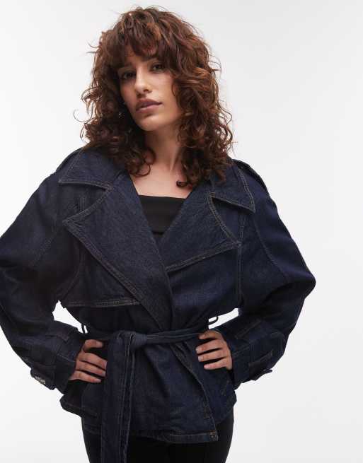 Mango - Cropped denim trenchcoat in blauw