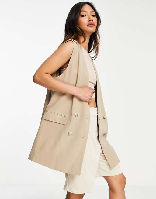 Mango - Elegant double breasted gilet zonder mouwen in camel, deel van co-ord set