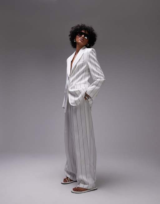 Mango - Elegante broek met krijtstreep in wit, deel van co-ord set