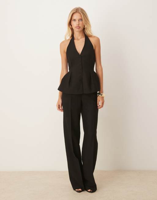 Mango - Elegante broek van katoenmix met geplooide voorkant in zwart, deel van co-ord set