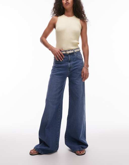 Mango - Elise - Jeans met lange pasvorm en wijde pijpen in middenblauw