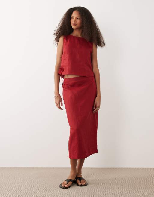 Mango - Fred - Midirok van 100% linnen in rood, deel van co-ord set