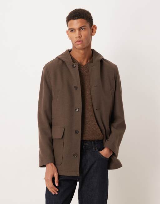 Mango - Geborstelde jas met capuchon en zakken in bruin