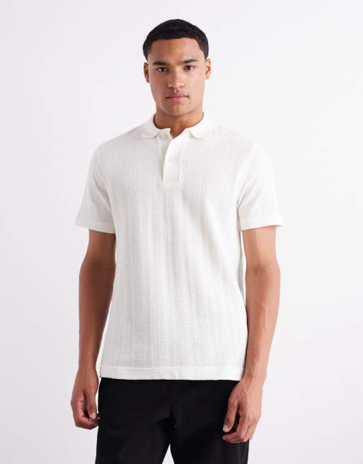 Mango - Gebreid poloshirt van katoenmix in ecru