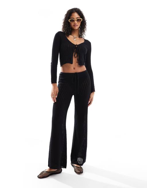Mango - Gebreide flare broek in zwart, deel van co-ord set
