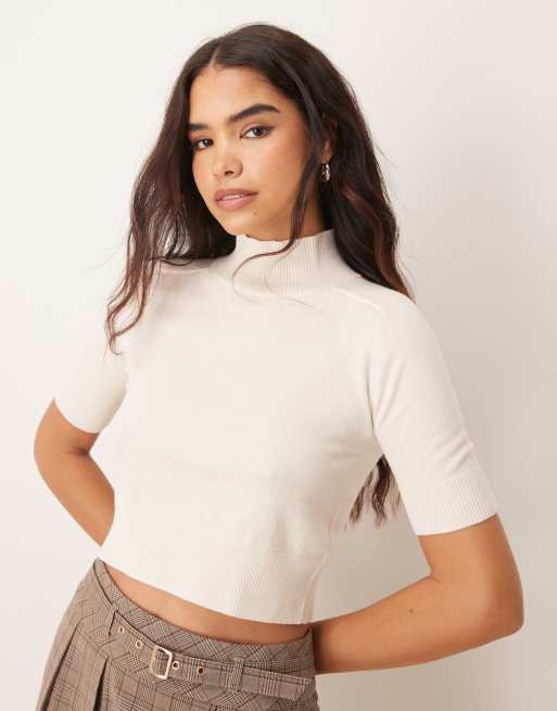 Mango - Gebreide top van wolmix met korte mouwen in wit