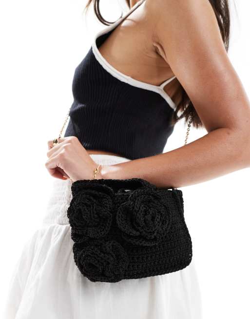 Mango - Gehaakte tas met 3D bloemen in zwart