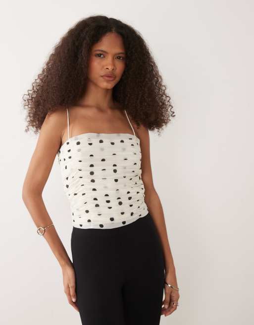Mango - Gerimpelde cami top met bandjes in beige met zwarte stippen