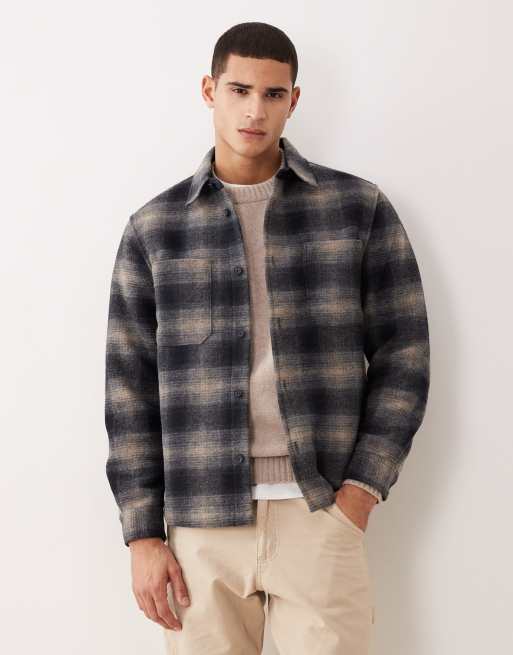 Mango - Geruit shacket in marineblauw