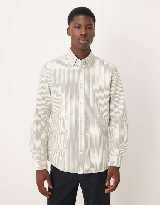 Mango - Gestreept overhemd van 100% katoen in kaki