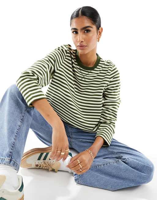 Mango - Gestreept sweatshirt in wit met groen