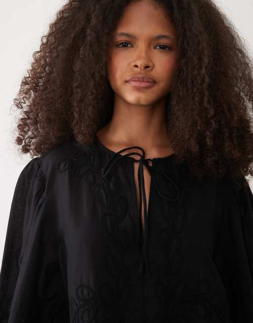 Mango - Getailleerde blouse van 100% katoen in zwart