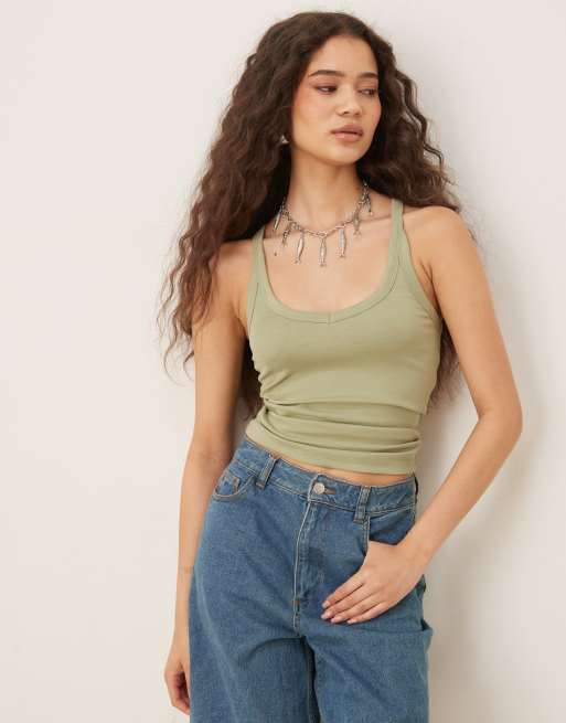 Mango - Gevormde cami top met V-hals in zachtgroen