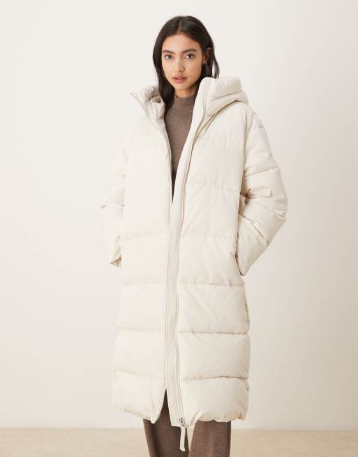 Mango - Gewatteerd jack met capuchon en lange pasvorm in crème