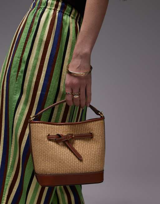 Mango - Geweven bucket bag met structuur en gespdetail in lichtbruin