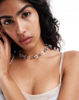 Mango - Halsketting met schakels van hars in zilver