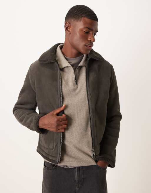 Mango - Harrington jack in bruine suède-look