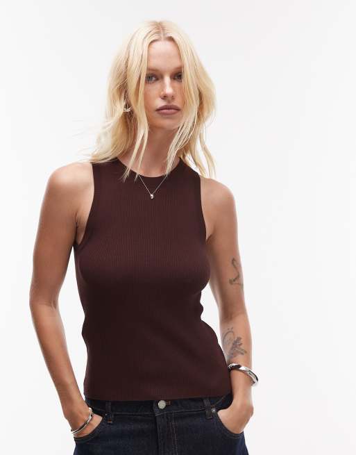 Mango - Hemdje met hoge ronde hals in chocoladebruin