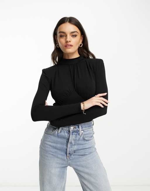 Mango - Hoogsluitende body met schoudervullingen in zwart