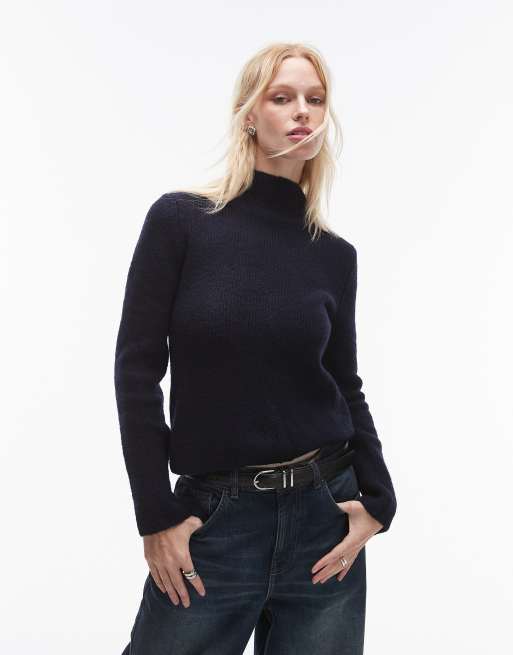 Mango - Hoogsluitende gebreide trui in marineblauw