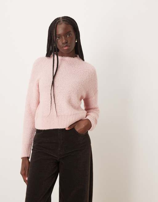 Mango - Hoogsluitende trui met textuur in pastelroze