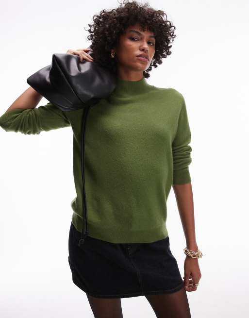 Mango - Hoogsluitende trui van kasjmier in olijfgroen