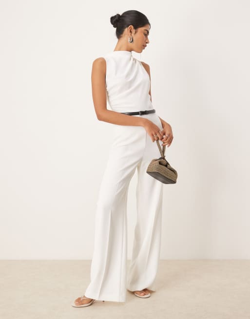 Mango - Jumpsuit met gerimpelde taille en gedrapeerd detail in wit