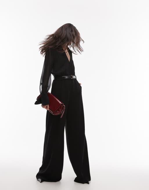 Mango - Jumpsuit met riem en lange mouwen in zwart