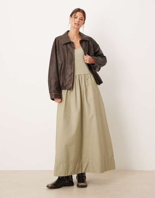 Mango - Katoenen maxi jurk met verlaagde taille in kaki
