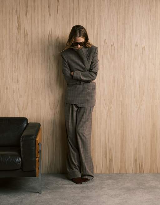 Mango - Katy - Elegante geruite co-ord set met ruimvallende blazer en broek in bruin