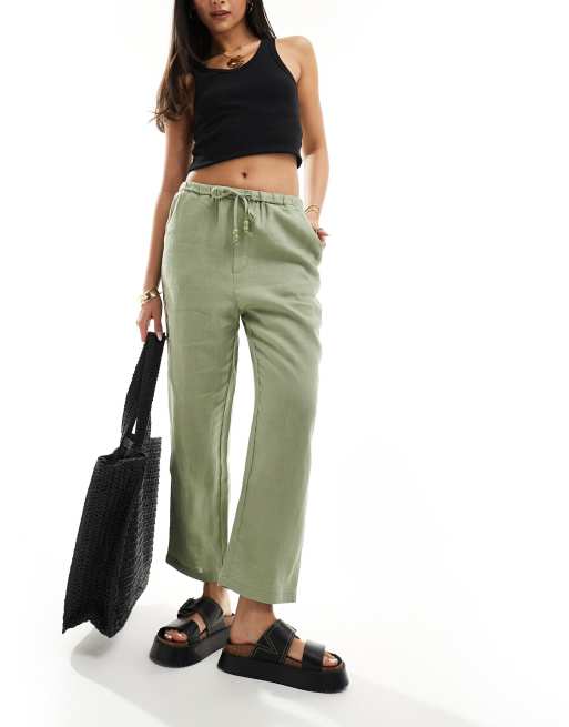 Mango - Linnen broek met gestrikte taille in lichtgroen