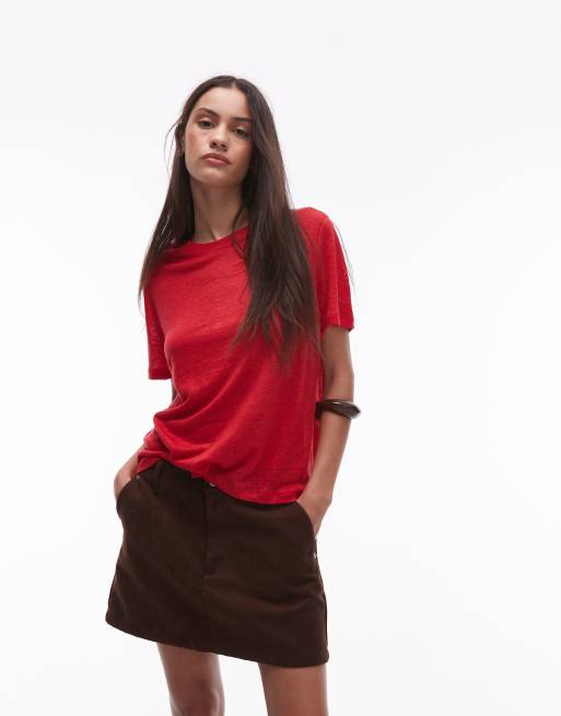 Mango - Linnen T-shirt in rood