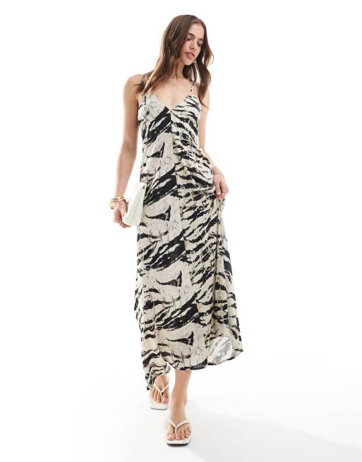 Mango - Maxi cami jurk met slangenprint in grijs