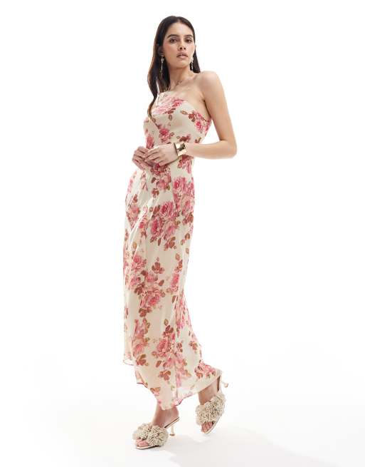 Mango - Maxi jurk met blote schouder en bloemenprint in wit