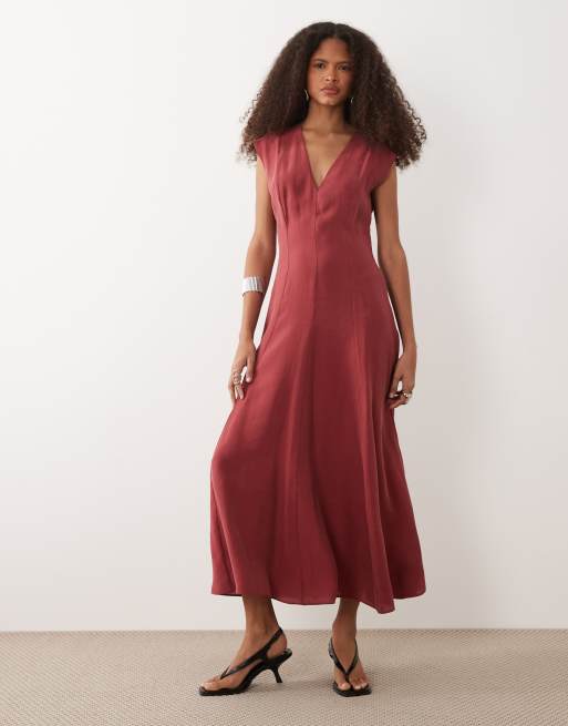 Mango - Midi jurk met gesmokte taille in dieprood