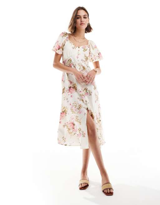 Mango - Midi jurk met knoopsluiting en bloemenprint in wit