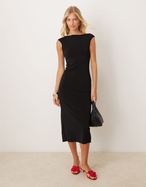 Mango - Midi jurk met lage ronde hals en open rug in zwart