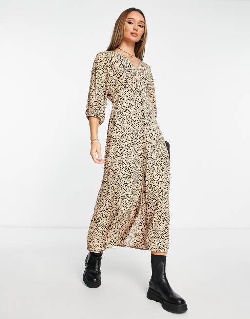 Mango - Midi-jurk met V-hals en luipaardprint in bruin