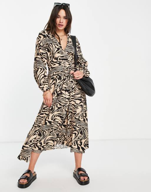 Mango - Midi jurk met veters aan de voorkant en dierenprint