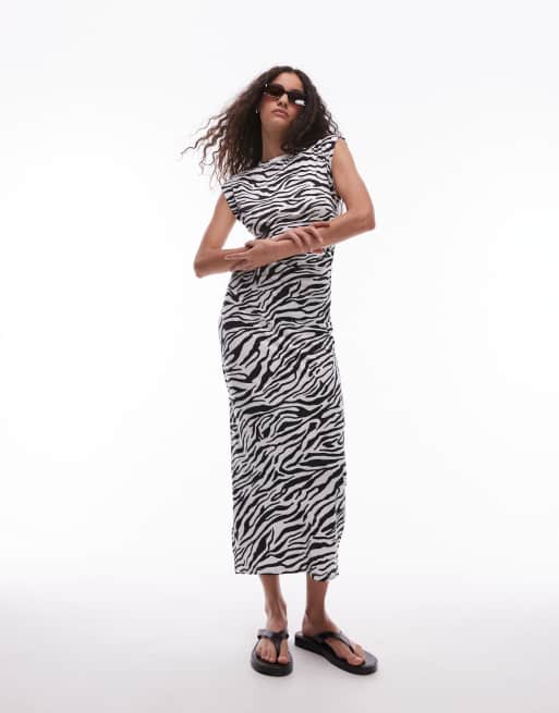 Mango - Midi-jurk met zebraprint en kapmouwtjes in wit