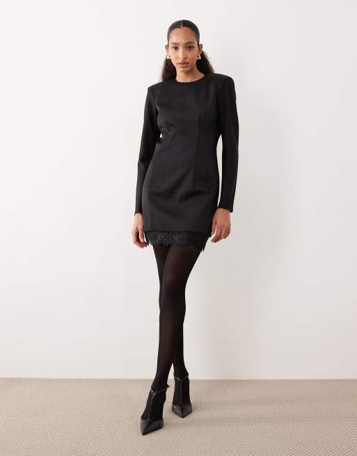Mango - Mini-jurk met lange mouwen en kanten zoom in zwart