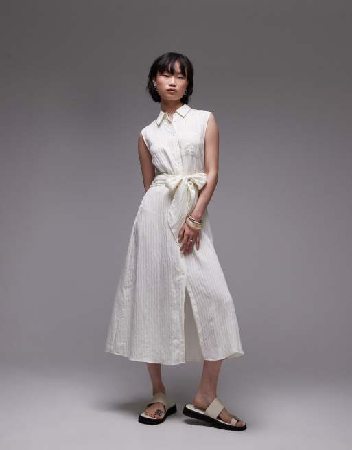 Mango - Mouwloze midi jurk met strik aan de voorkant in wit