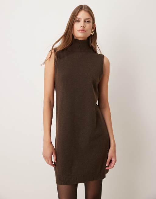 Mango - Mouwloze mini jurk met col in bruin