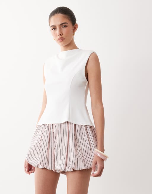 Mango - Mouwloze top met peplumzoom in wit