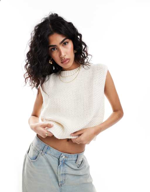 Mango - Mouwloze trui in gebroken wit